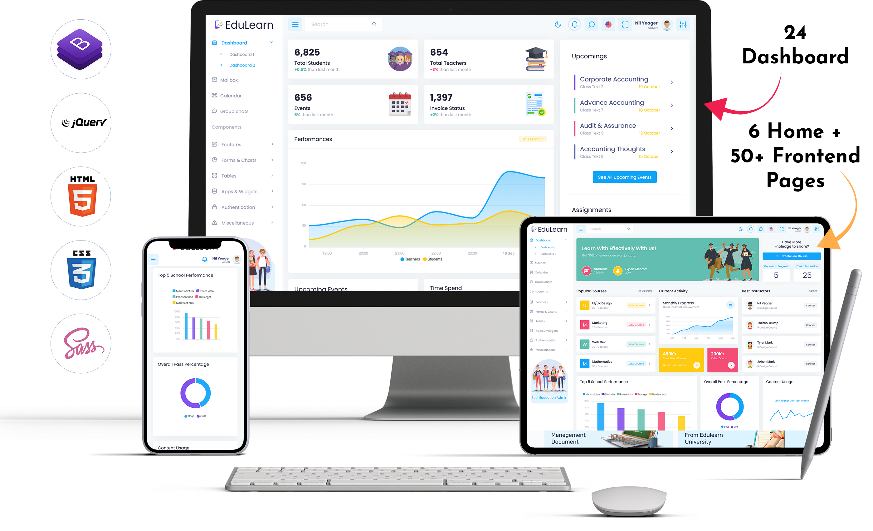 All layouts of Edulearn Admin will look great on any device. Edulearn Admin template is fully responsive with Bootstrap Framework